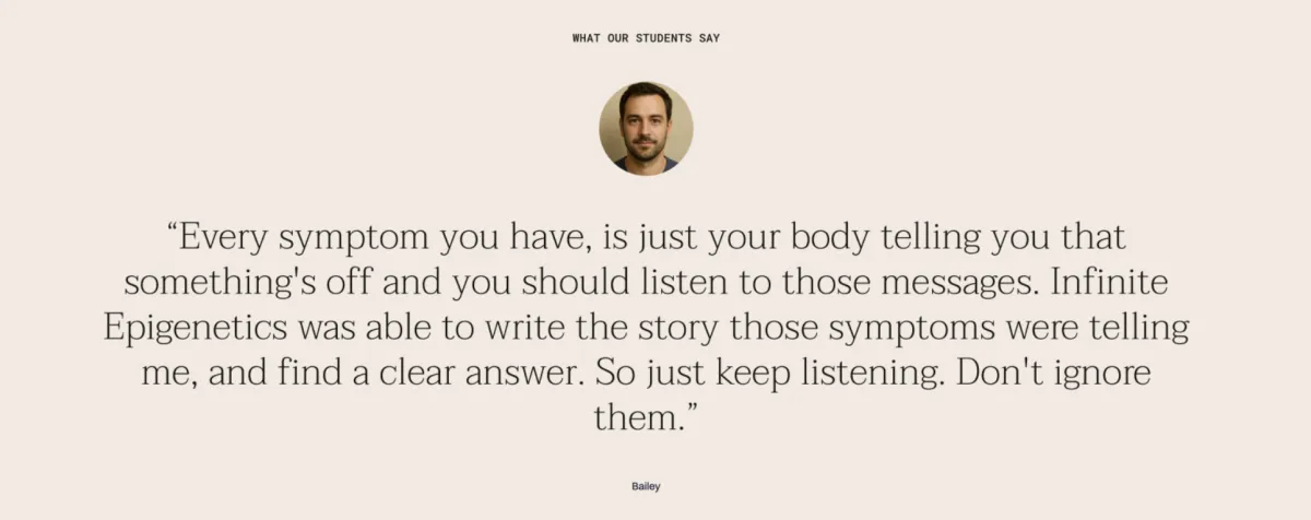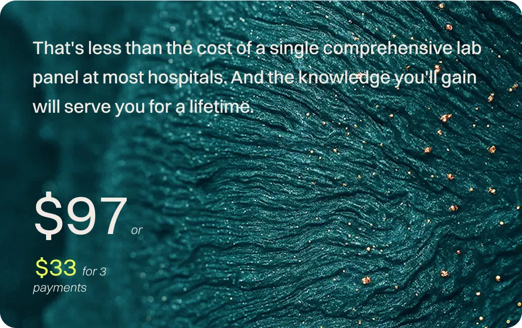 The Epigenetics Masterclass breaks down complex science into practical, easy-to understand lessons giving you the tools to decode your health, slow aging, and take control of your future.