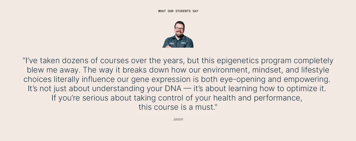 The most comprehensive, science-backed program to harness epigenetics for your health. Unlike fragmented information you might find online, the Epigenetics Masterclass provides: